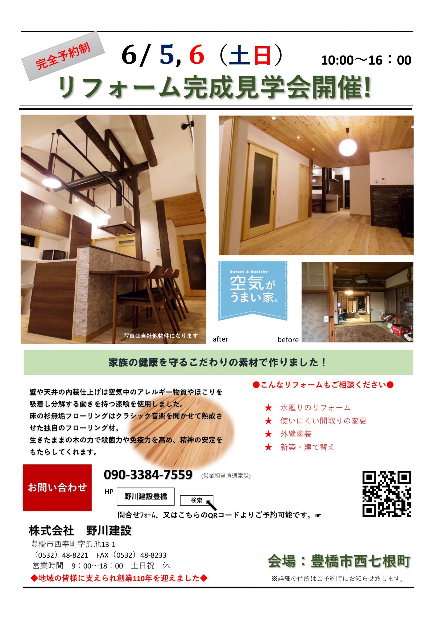 6/5(土)、6/6(日) 豊橋市西七根町にてリフォーム完成見学会を開催致します。
