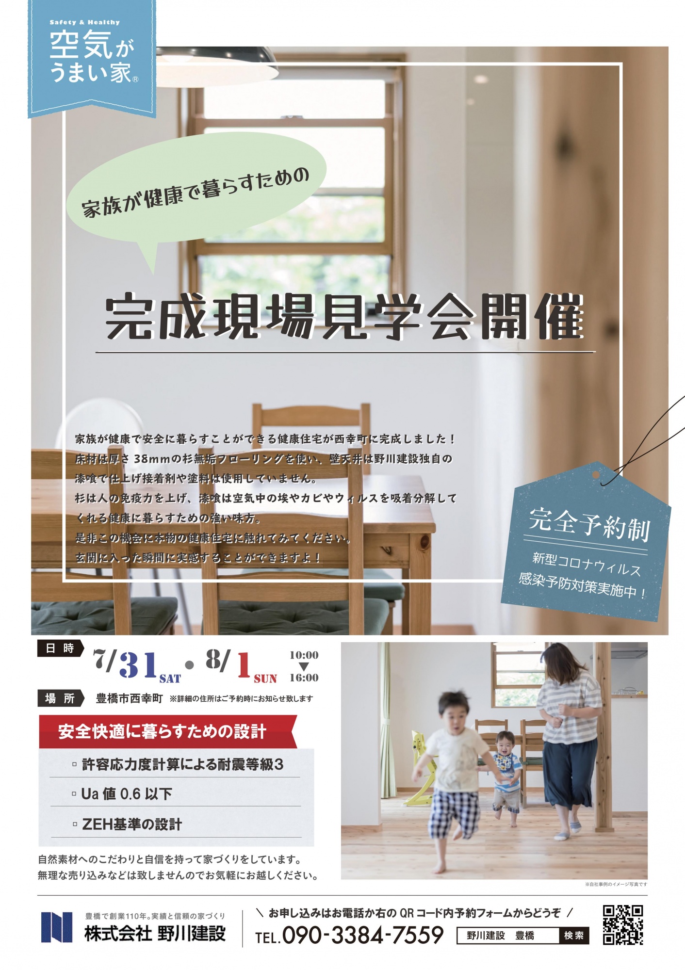 7/31(土)・8/1(日) 豊橋市西幸町にて完成見学会を開催致します。