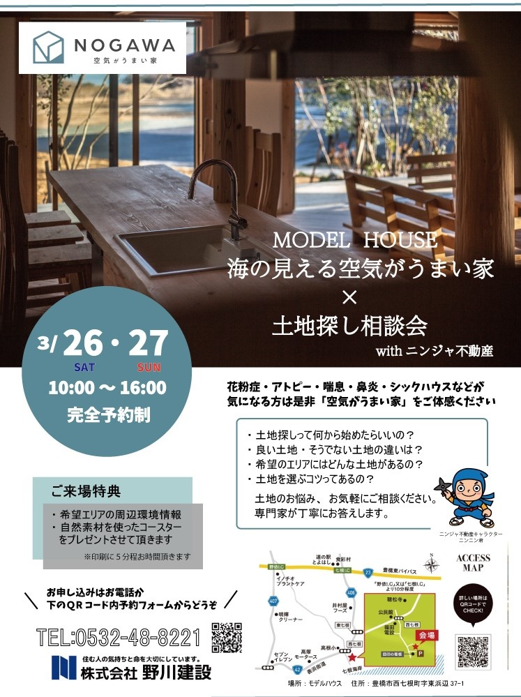 3/26(土)、27(日) 海の見える空気がうまい家 × 土地探し相談会 を開催致します。