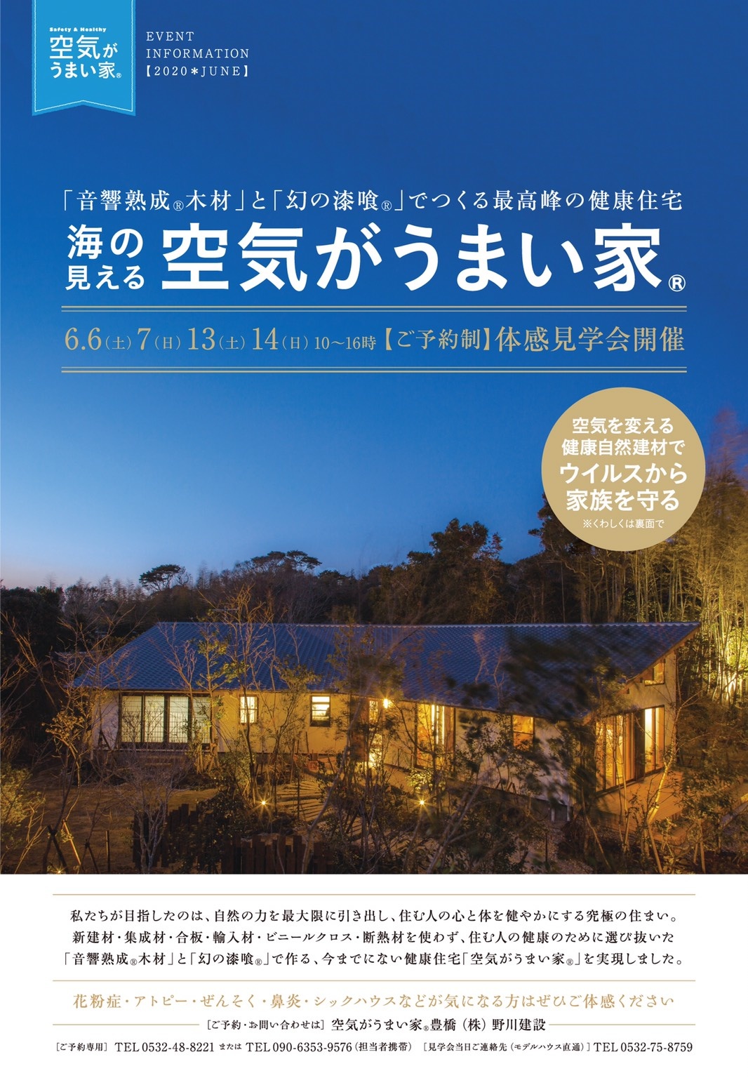 予約制 6/6(土)、7(日)、13(土)、14(日)海の見える空気がうまい家にて体感見学会を開催致します。