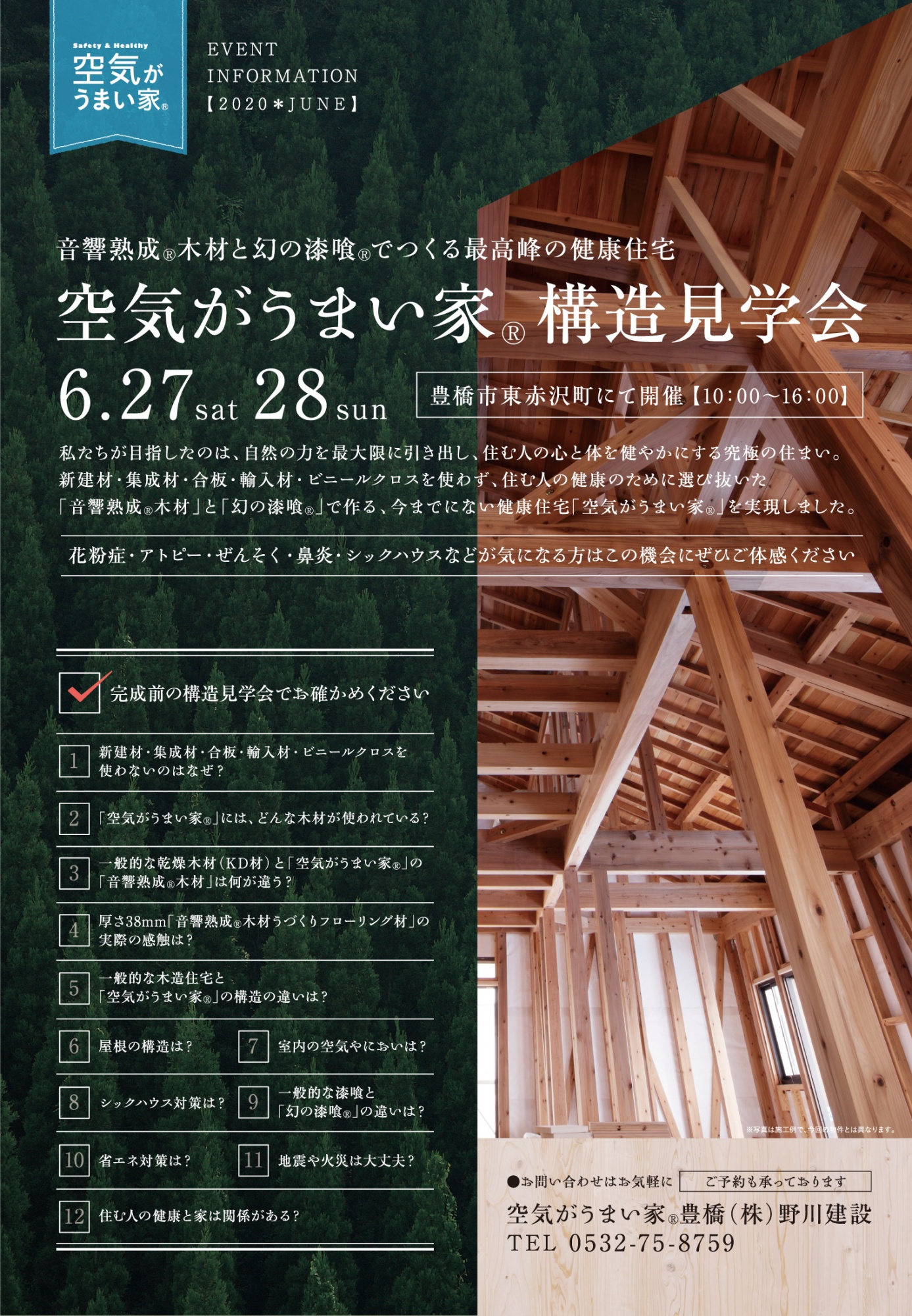6/27(土)、28(日)豊橋市東赤沢町にて構造見学会を開催致します。