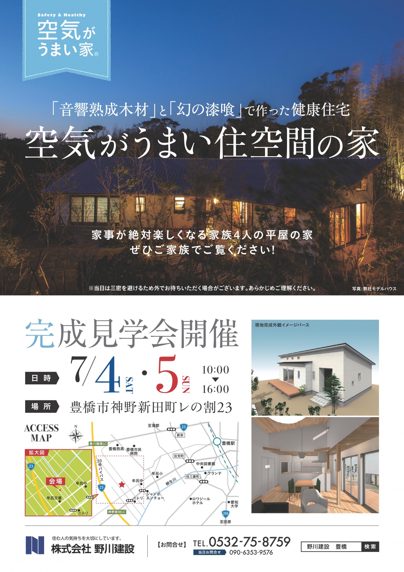 7/4(土)、5(日)豊橋市神野新田町にて完成見学会を開催致します。