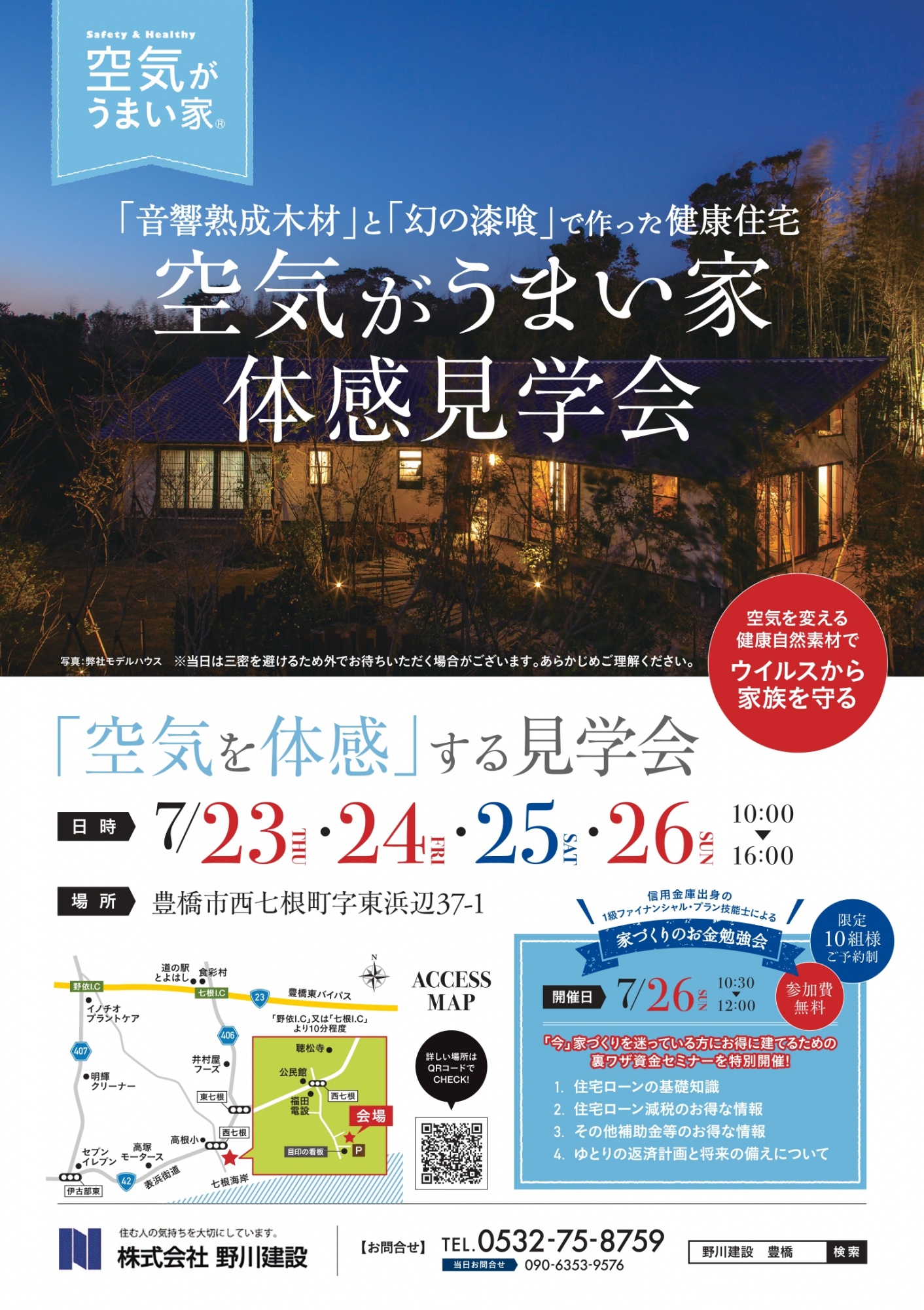 7/23(木)、24(金)、25(土)、26(日)海の見える空気がうまい家にて体感見学会を開催致します。