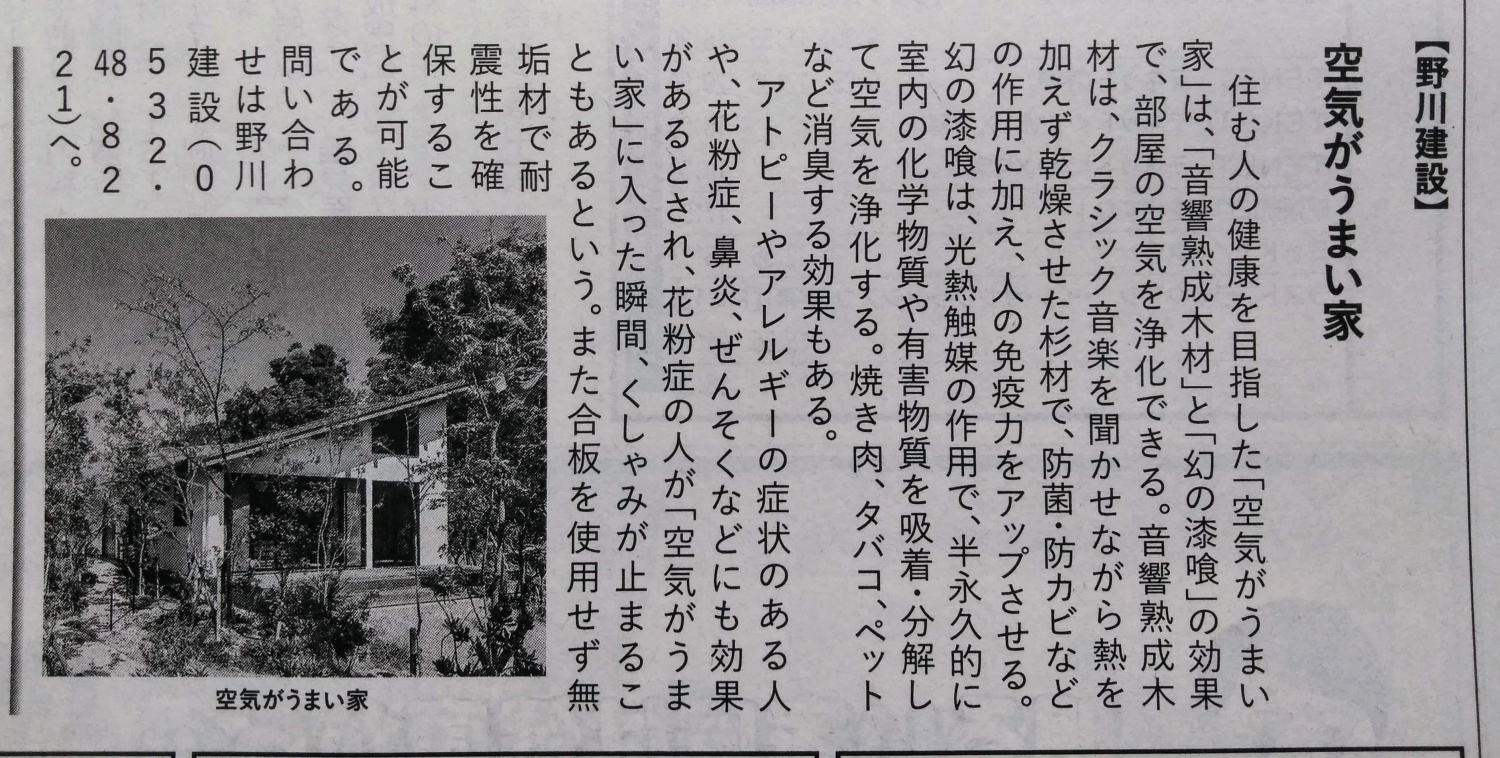 10/20東愛知新聞の「東三河新しいもの特集」に空気がうまい家について掲載していただきました!